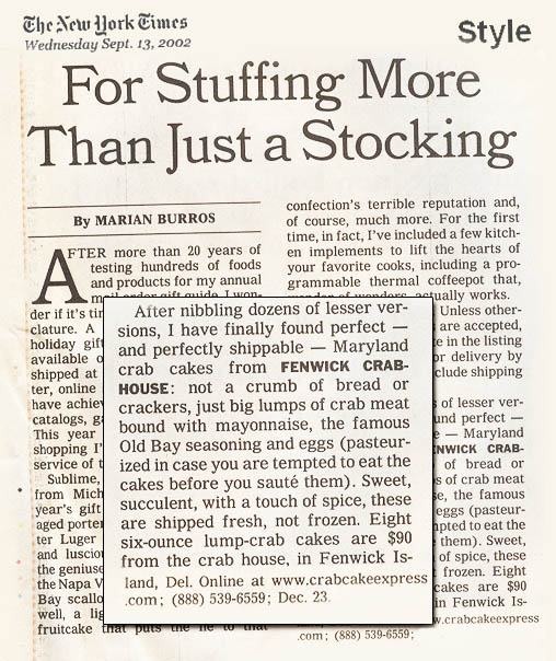 Marrion Burros review of Crab Cake Express Crab Cakes in the New York Times